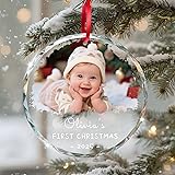 PREZINA Personalized Babys First Christmas Ornament 2025 Boy Girl, My First Christmas Ornament with Photo Text - Custom 1st Christmas Ornaments 2025 for Baby, Newborn Xmas Gifts for New Mom Dad(3.15")