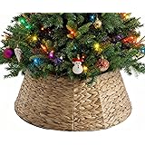 Sweetcrispy 24inch Christmas Tree Collar for 4-7ft Trees, Woven Hyacinth Rattan 4-Panel Collar w/Cord Access Hole & Easy Lock Design,Woven Natural