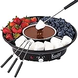 Kusini Electric Fondue Pot Set - Chocolate Fondue Kit - Temperature Control, Detachable Serving Trays, & 4 Roasting Forks - Gift Set & Date Night Idea. Serve at Movie Night or Game Night.