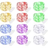 Brightown 12 Pack Multi Color Led Fairy Lights Battery Operated String Lights Waterproof Silver Wire 7 Feet 20 Led Firefly Starry Moon Lights for DIY Wedding Party Bedroom Patio Christmas