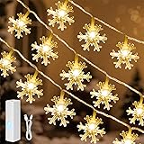 Christmas Lights, 20FT 40 LED Snowflake Fairy Lights Battery Operated Indoor, Rechargeable String Lights, Mini Twinkle Lights with 8 Modes & Timer for Bedroom Party Xmas Tree Decorations Warm White