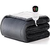 Homemate Heated Blanket Electric Throw - 50"x60" Heating Blanket Throw 1/2/4/6/8 Hours Auto-Off 10 Heat Level Over-Heat Protection Flannel Sherpa ETL Certification